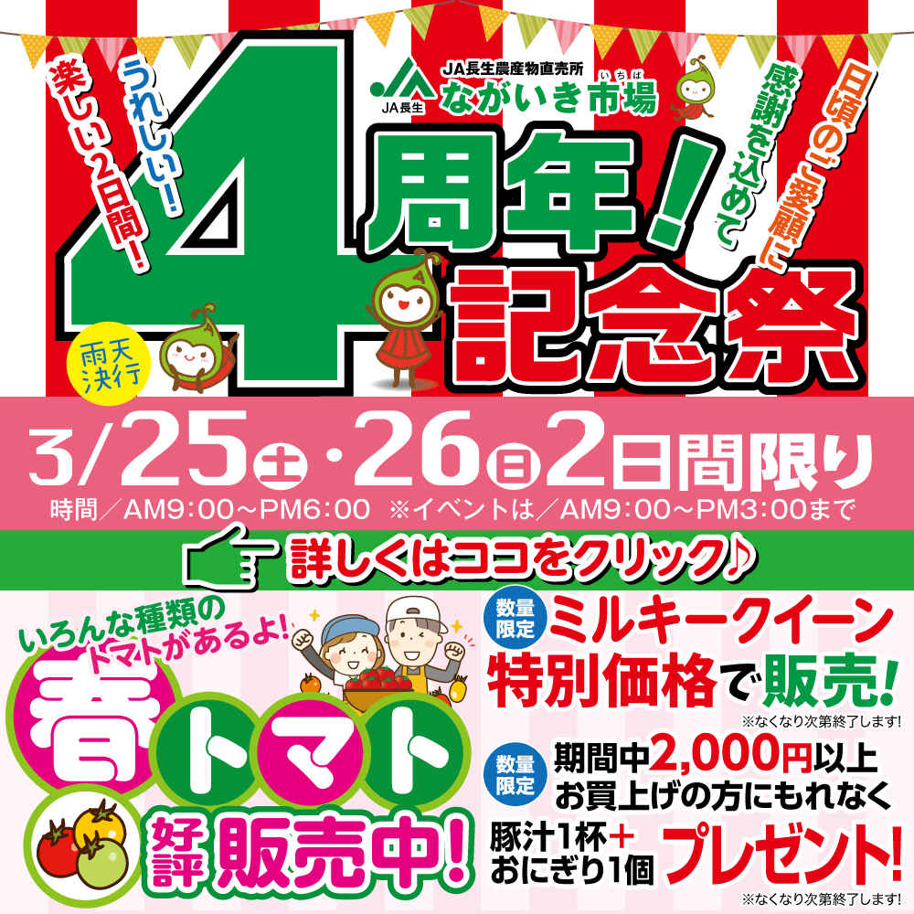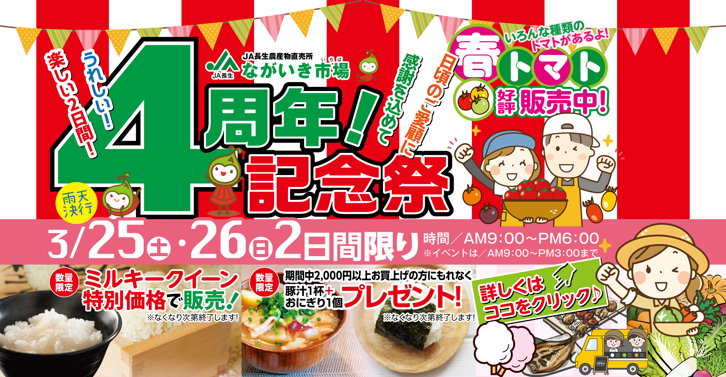 地元長生でとれた、みずみずしい新鮮な野菜や果物が豊富に並びます。ぜひお立ち寄りください。