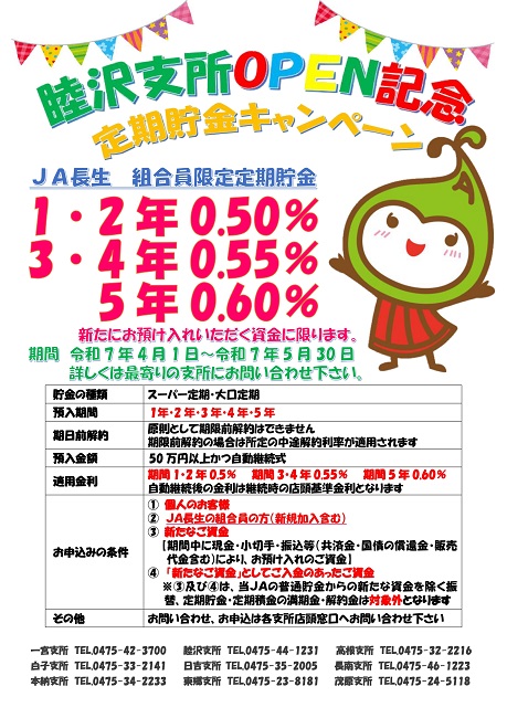 睦沢支所オープン記念定期キャンペーンのお知らせ(終了)