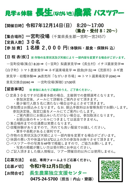 お問い合わせ:長生農業独立支援センター TEL:0475-24-5700