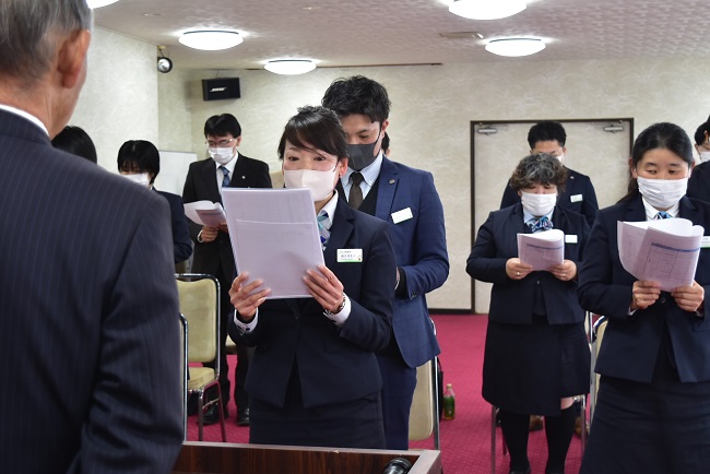 新年度の事業が始まるにあたり、14日にライフアドバイザー(LA)、16日に金融渉外の進発式を開催し、本年の活動計画と目標を確認しました。河野代表理事組合長は「目標達成に向けて一丸となって努力してほしい」と挨拶し、それぞれの渉外担当者代表が目標達成に向け力強い決意表明を行いました。本年はLA18名、金融渉外5名体制で、組合員の皆さまの暮らしやライフスタイルに即したご提案やサポートに取り組むことを申し合わせました。