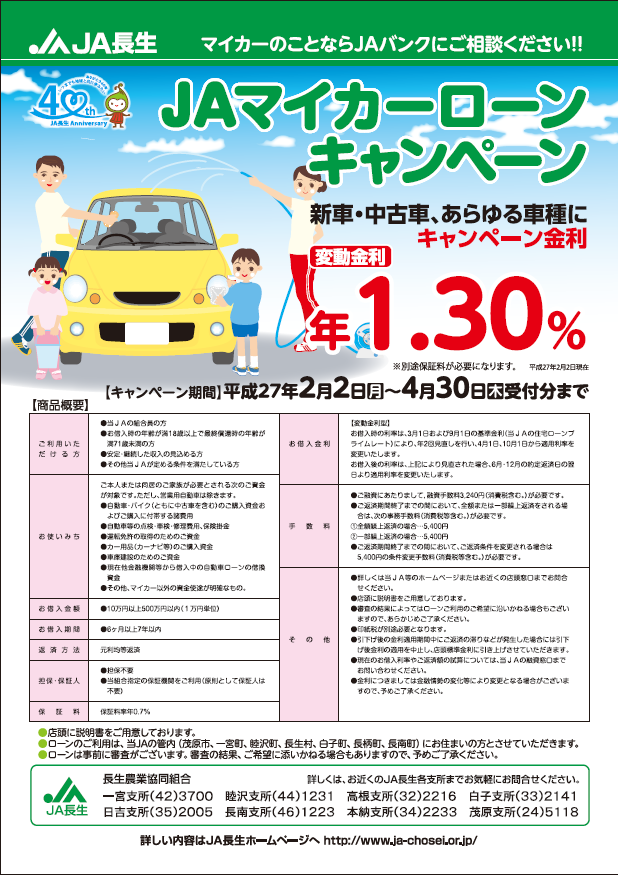 ●ローンのご利用は、当JA管内(茂原市、一宮町、睦沢町、長生村、白子町、長柄町、長南町)にお住まいの方とさせていただきます。