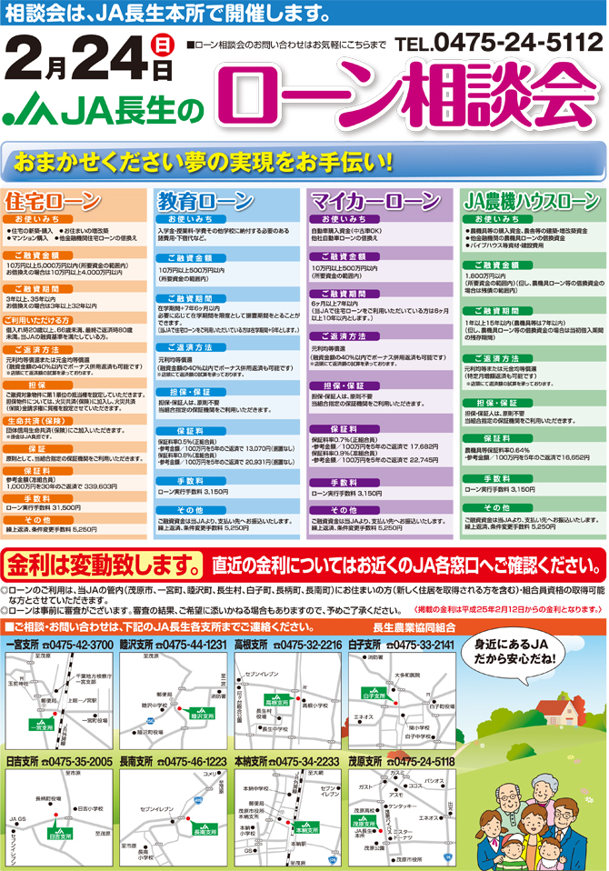 本納支所:℡34-2233 茂原支所:℡24-5118