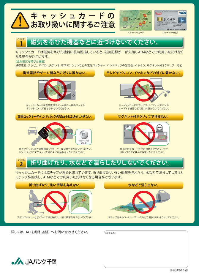 JAバンク千葉では、お客様のキャッシュカードを偽造等の犯罪からお守りするため、カードのIC化をお願いしております。