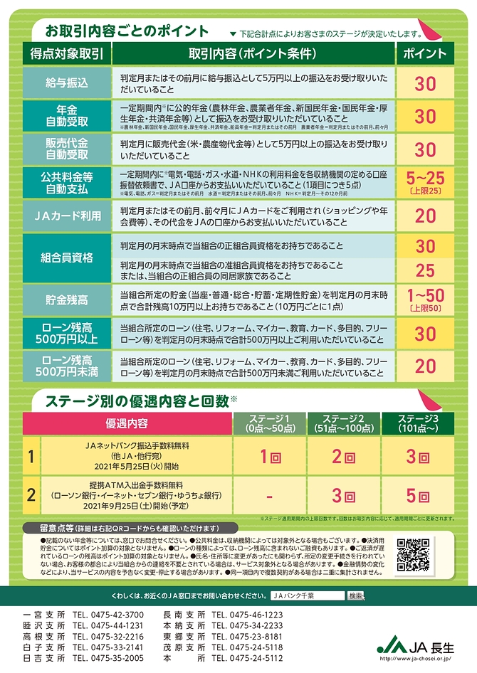 JAバンクでは、広報誌「ちょうせい」5月号またHPでもお知らせしておりますコンビニATM(セブイレブン・ファミリーマート・ローソン等)での入出金について、全国統一で10月1日(金)より有料となる予定ではありますが、お取引内容に応じて手数料を優遇するサービスを開始いたしますので、ご理解いただきますようお願いいたします。