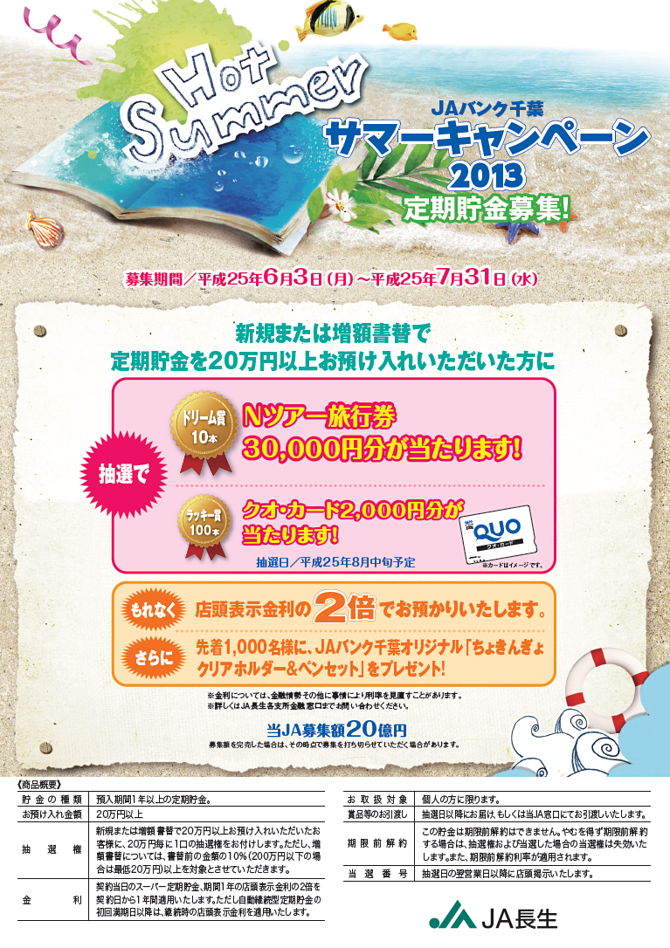 サマーキャンペーン2013!懸賞金品付定期貯金募集!
