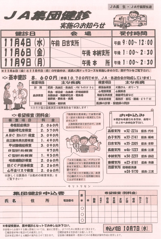 11月4日(水) 日吉支所 午前 9:00~12:00