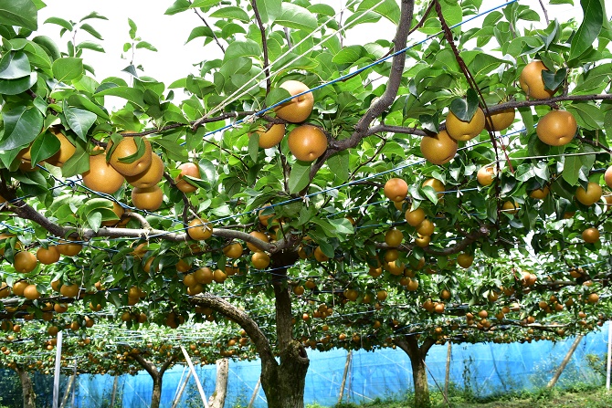 ~「ながいき梨」とは~古くは「献上梨」とも呼ばれた、味が自慢の「ながいき梨」。九十九里南端の温暖な気候と、その大地が生んだのは、甘く爽やかな食感と丸く美しい姿がともなった梨です。
