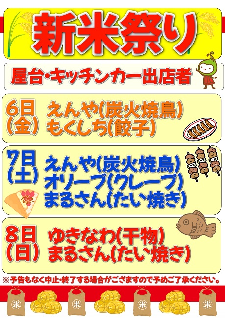 日程は9/6(金)~8(日)の3日間です!とれたての新米を特別価格での販売や屋台・キッチンカーの出店などの様々なイベントをご用意してお待ちしております。