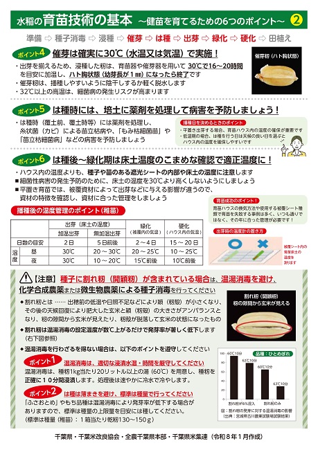 水稲の育苗について、健苗を育てるための6つのポイントをまとめています。