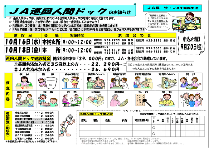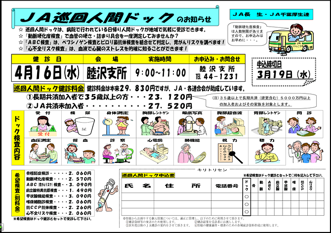 「巡回人間ドック」・「集団検診」 のご案内(申込終了)