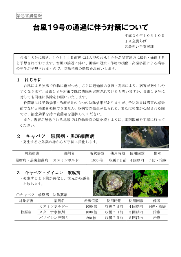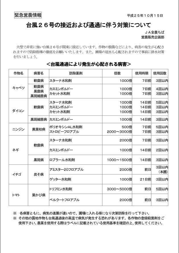 「10月の病害虫発生予報」 情報