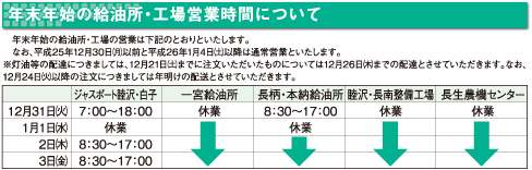 年末年始営業時間のお知らせ