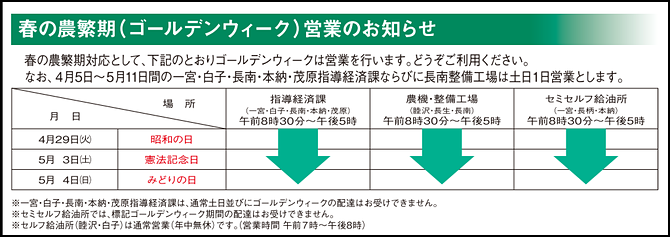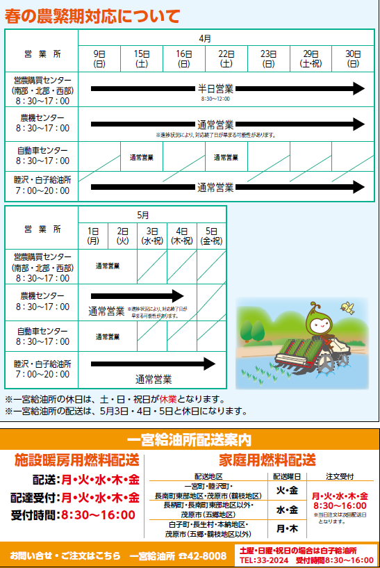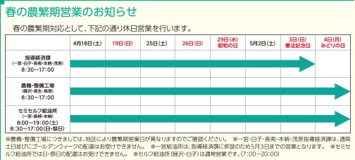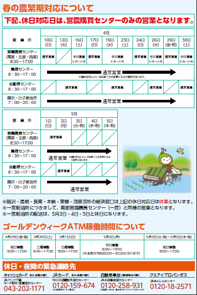 春の農繁期対応について