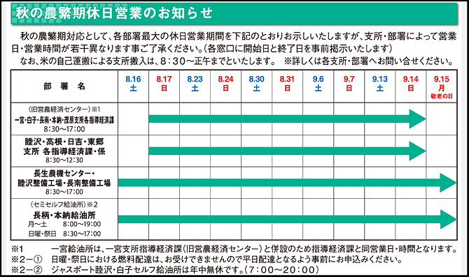 秋の農繁期対応について