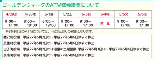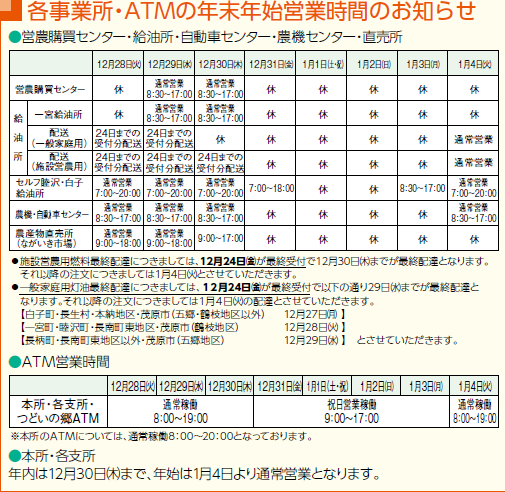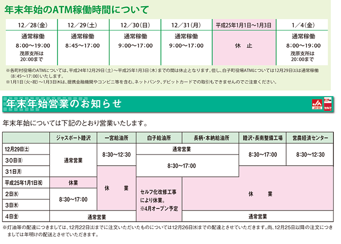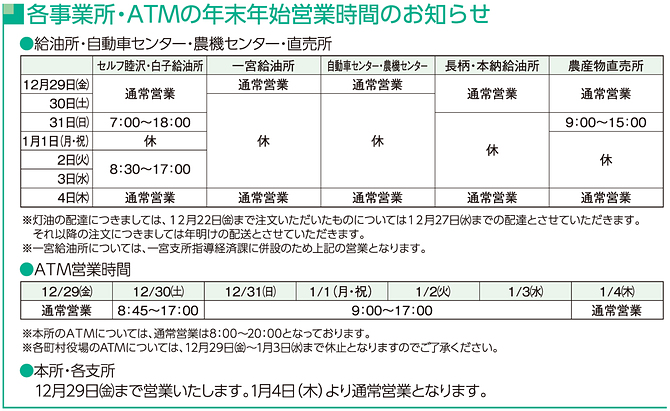 年末年始ATM稼働時間・営業日時についてのお知らせ