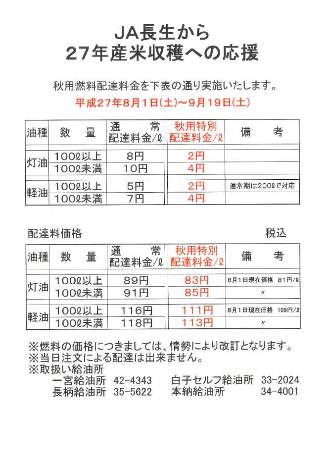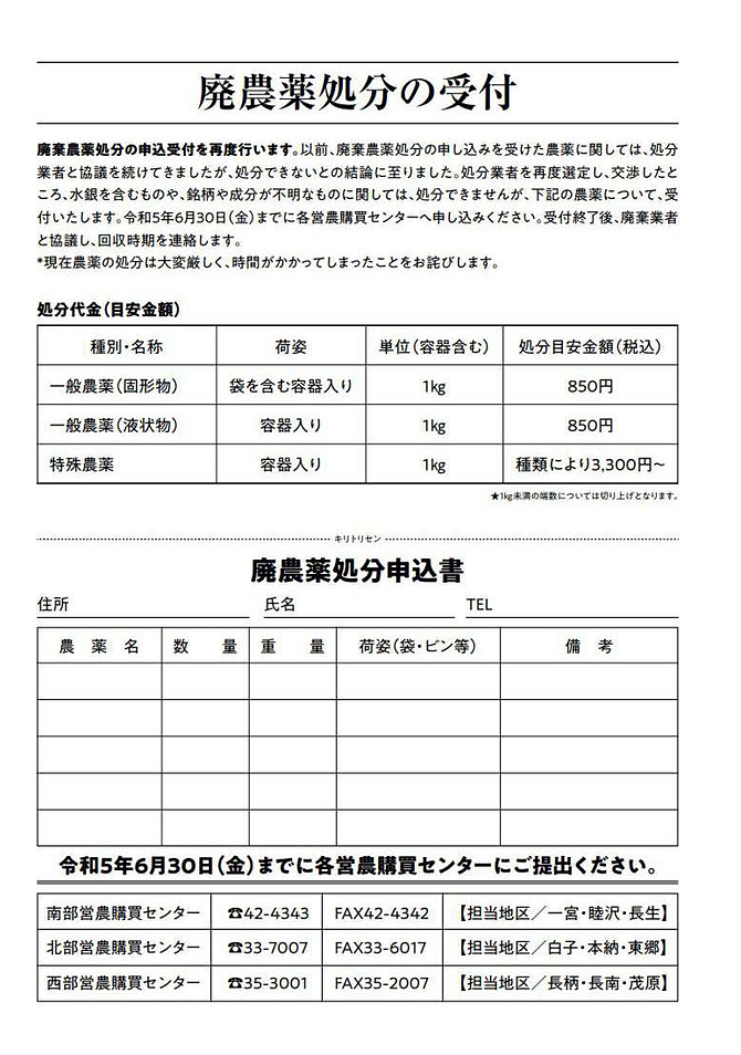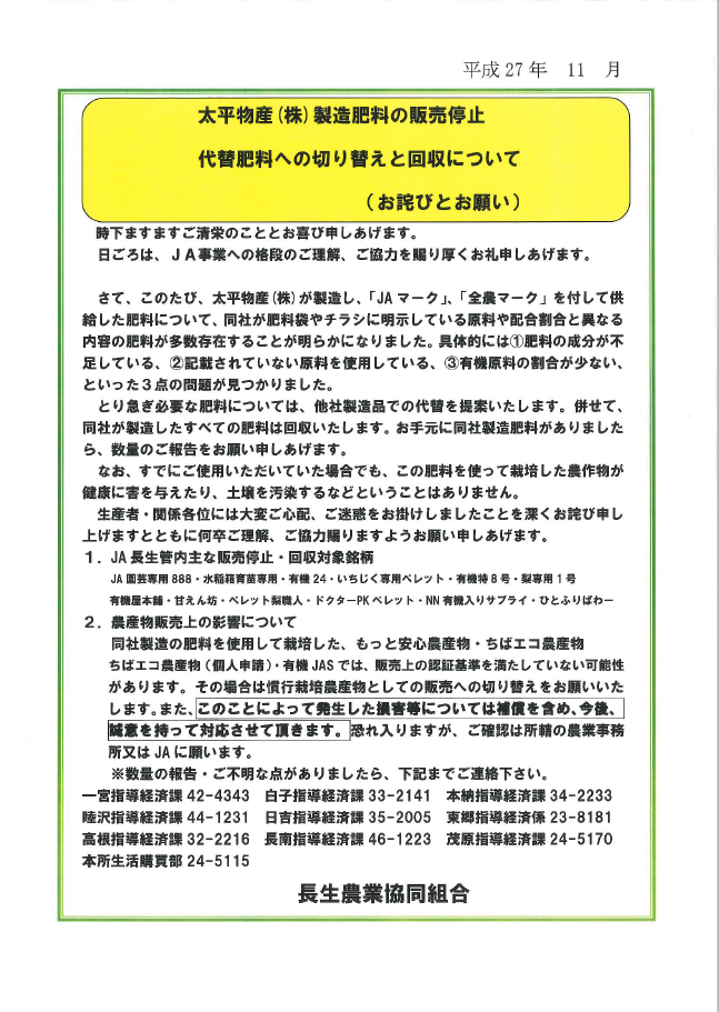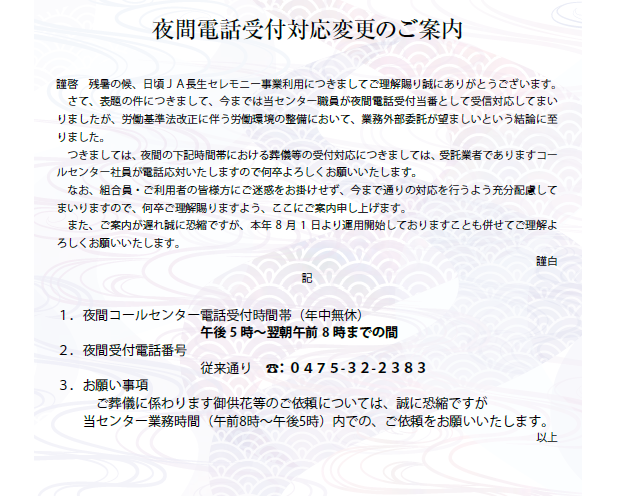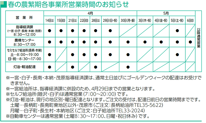 JA長生からのお知らせ一覧