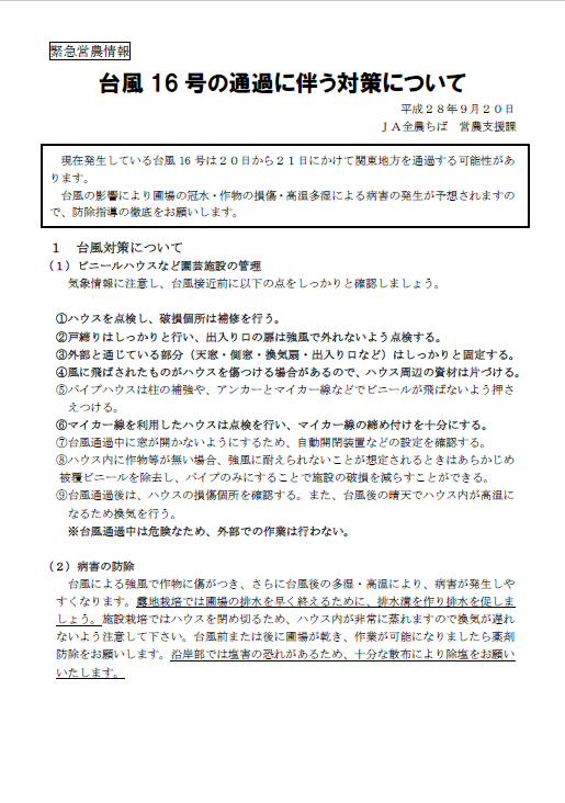 台風7号の影響に伴う営業について