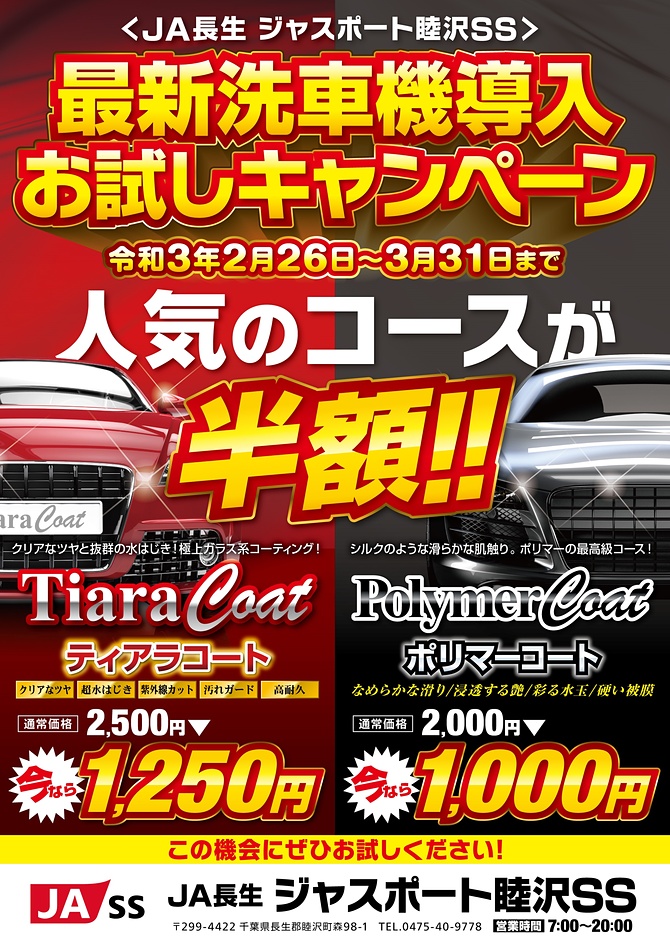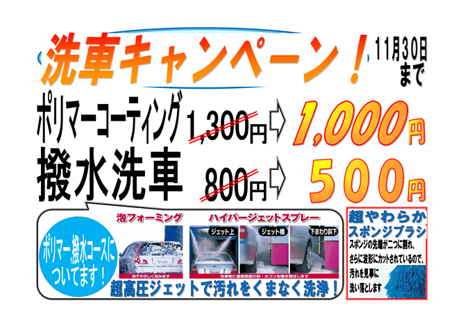 【ジャスポート睦沢SSから】洗車キャンペーンのお知らせ(終了)