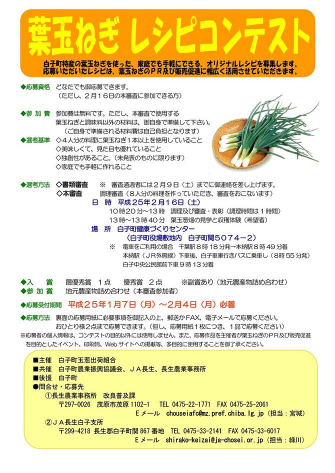 2013葉玉ねぎレシピコンテスト参加者の募集!(申込終了)