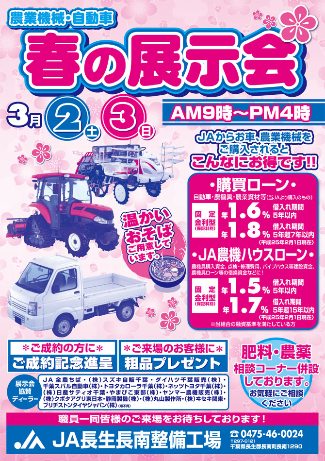 3月2日(土)~3日(日)農業機械・自動車 春の展示会(終了)