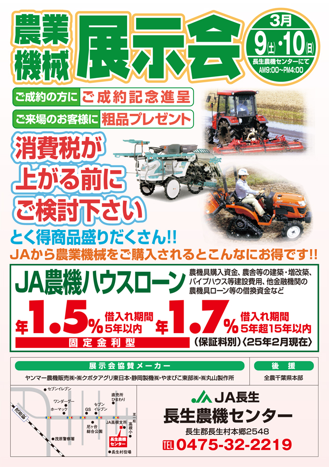 3月9日(土)~10日(日)農業機械展示会 (終了)