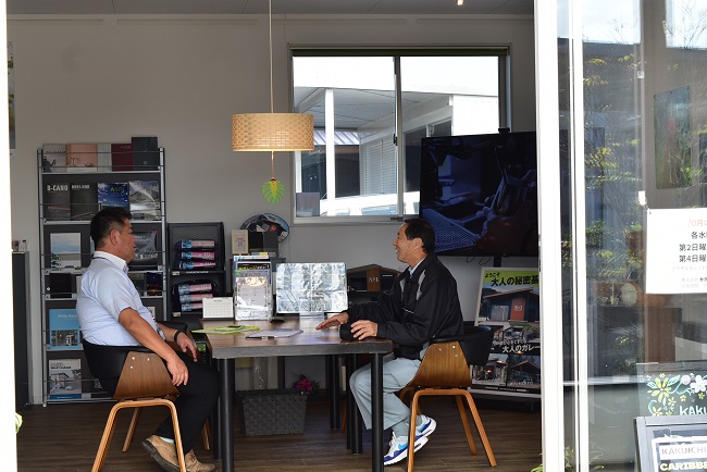 カクイチA-SITE茂原にて、くらしの展示会を開催しました。会場の中では、倉庫・ガレージ等の建物相談やきこえの相談会、マッサージ機の体験会、りんごの詰め放題などのイベントが行われました。訪れた来場者は、展示されている倉庫やガレージ内を見学したりしながら、メーカーからの説明を熱心に聞いていました。