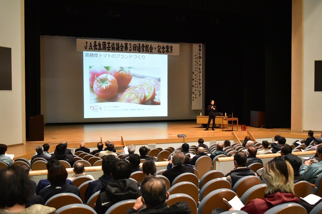 その後の記念講演では、静岡県立大学の岩崎教授を招き「農業を強くするマーケティング~食と農のおいしいつなぎ方~」と題して講演を行いました。