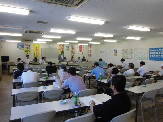夏期トマトの出荷を前に、JA長生施設野菜部会養液トマト部はJAグリーンウエーブ長生で、「夏期販売会議」を開きました。生産者、全農、市場担当者ら26人が出席しました。