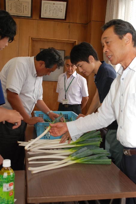 夏ネギの出荷が最盛期を迎えています。JA長生本納蔬菜部は、JA長生本納支所で、生産者や関係者20人が出席し、平成25年産夏ネギの査定会を開催しました。 石渡輝之部長は「長生ブランドの品質向上のため、今日の査定会を有意義にし、品質の良いものを出荷してほしい」と挨拶しました。 査定会は生産者が持ち寄ったネギで現品査定を行い、関係者は「根の切りすぎに気を付け、泥をきれいに落とし早め早めの出荷をお願いしたい」と呼びかけました。