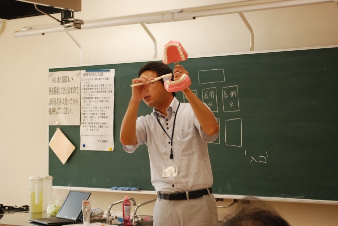 その後、パネルや歯の模型を使い歯の磨き方などの説明をしました。