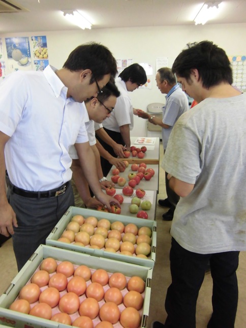 査定会では、現品研修を行い、大きさ・着色・硬さなどの規格・品質の統一を図りました。