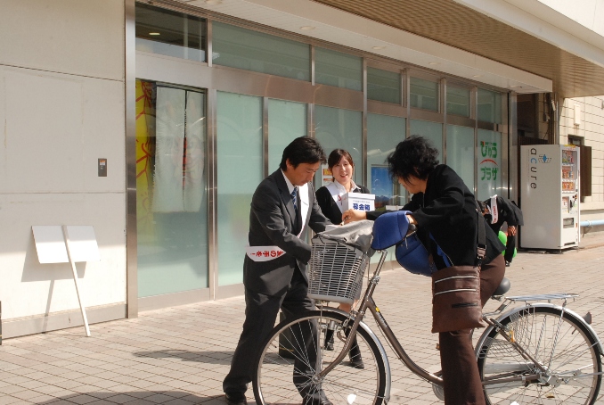 10月18日、千葉県内JAとJA共済連千葉は県内の主要駅で「JA共済 交通遺児育英資金募金活動」の街頭募金を行いました。JA長生でも、JR茂原駅前で駅利用者や通行人の方々に募金を呼びかけました。 募金の呼びかけに多くの方々に足を止めていただきました。 集まった募金は、交通遺児援護世帯を激励する見舞金や勉学奨励金などに役立てられます。 ご協力ありがとうございました