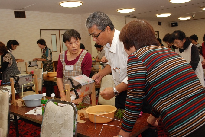 JA長生女性部は10月25日、女性部短期大学校第7回講座の繭から作るランプシェードの講習会を開きました。とても人気のある講座で毎年行っています。