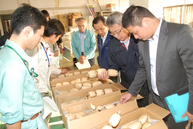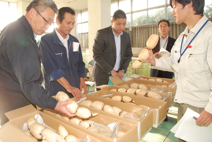 長南町蓮根組合は10月31日蓮根の共進会を開きました。長生農業事務所、役場、指定市場、全農ちば担当者らが審査員となり、11品の中から色・太さ・キズ・ツヤを審査して最優秀賞1点と優秀賞1点、優良賞2点を決めました。その結果、浅生栄一さんが最優秀賞に輝きました。 審査員は「大変な栽培環境の中、どれも良い物で優劣つけがたい品でした。これからも消費者に喜ばれる蓮根を作って欲しい」と講評しました。 年末に向け出荷がピークを迎えます。