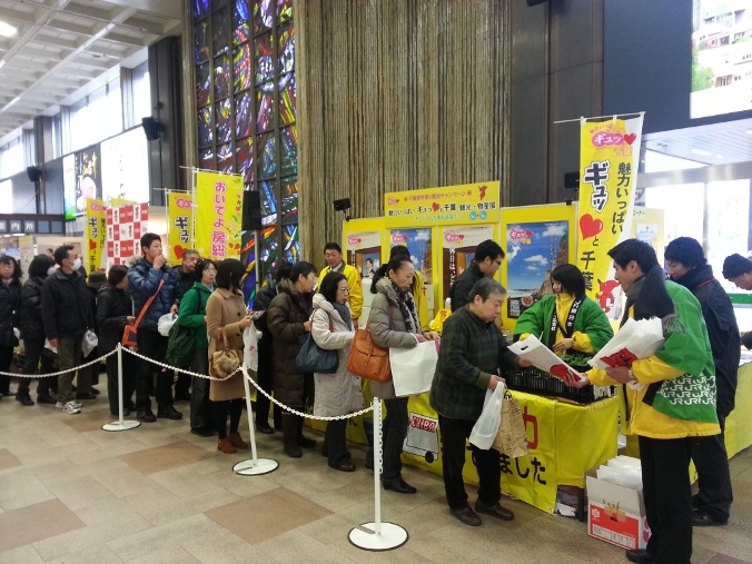 1月16日と17日の2日間、仙台駅で千葉県主催の「千葉県観光・物産キャンペーンin仙台」にJA長生が出展しました。東北地方最大の都市の仙台で、一足先に春の訪れる温暖な千葉県の魅力をPRしてきました。