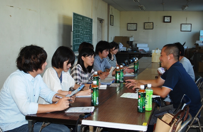 大学生は2班に分かれ、「後継者について」「遊休農地について」のテーマにそって、栽培のことや、農業を始めたきっかけ、遊休農地の利用のことなど質問をしました。青年部員は、冗談を交えながらの和やかな雰囲気のなか、丁寧に質問に答えていました。
