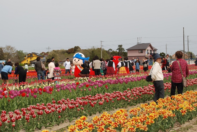 今年も4月5日~13日まで白子チューリップ祭りが開催されました。白子町役場東側にある花の広場には16種類の77,000本のチューリップが満開に咲き、最終日の13日には、花の販売やフォークダンスなどのイベントも行われ家族連れなどで賑わいました。