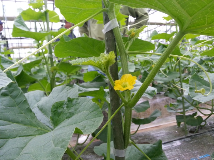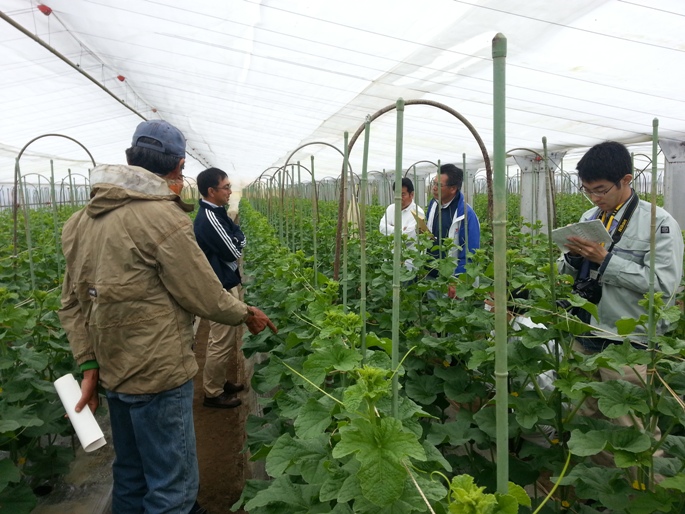 JA長生施設野菜部会メロン部は4月18日、全戸ほ場巡回を実施しました。生産者、長生農業事務所、暖地園芸研究所、種苗メーカー、JA職員ら14名が参加し、31ほ場の生育状況、交配時期の確認を行いました。