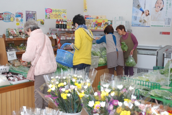 お客様は品定めをしながらトマトや新鮮な野菜を買い、アンケートに答えていました。