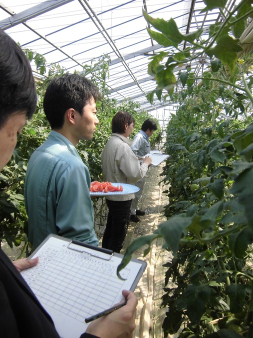 審査員長に千葉県農林総合研究センターの佐藤研究員を選任し、8ほ場を審査しました。審査員は「生育・着果・果形・収量・病害虫・管理・食味」の7項目を審査。