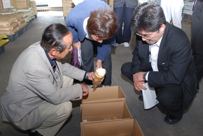 今が旬の春の味覚タケノコの出荷が3月30日から始まっています。 長柄筍生産組合は4月11日、タケノコの出荷最盛期を前に、生産者、市場関係者などが出席し査定会を開きました。 長柄産のタケノコは管理された竹林と粘土質の土壌から育つため、アクが少なく柔らかいのが特徴。 生産者と関係者は持ち寄った品を手に取りながら、規格や注意点を確認しました。 市場関係者は「新聞紙を箱の底に敷き、根の切り方に注意し、大きさを揃えて出荷してほしい」と呼びかけました。 出荷は5月上旬まで続きます。