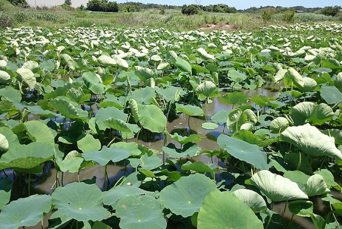 長南町蓮根組合は6月13日、平成26年産のほ場巡回を実施しました。生産者、長生農業事務所、JA職員ら17人が参加し、11ほ場についてアブラムシ等の病害虫の発生状況、追肥のタイミング、根まわしの状況等の確認を行いました。 生産者からは、生育は概ね順調だが、近年6月下旬の強風による軸折れが多く、これからの風が心配だと話がありました。 蓮根の出荷は7月下旬から来年3月下旬頃まで予定しています。