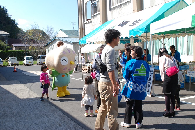 10月19日JA長生長南支所で、先週の白子支所に続き第2弾のふれあい感謝祭を開催しました。 長南産の蓮根を始め、ゴボウ、ネギなどの新鮮野菜や、長南地区の名産品の販売、綿あめ、ポップコーンなどの無料配布、農機具の展示を行い、多くの来場者が訪れました。 また、女性部長南支部員は、焼きそばを販売し、長南町のゆるキャラ「ちょな丸」も駆け付け会場を盛り上げました。