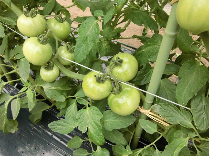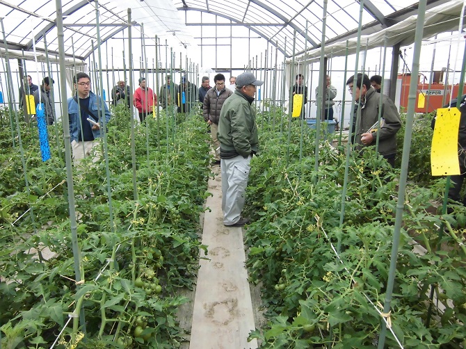 JA長生施設野菜部会春トマト部は1月21日と23日に、春トマトの現地検討会を開催しました。 各支部の生産者、種苗メーカー、長生農業事務所、JA職員らが参加し、検討会ほ場の生育状況の確認、収量と品質の更なる向上を目的とした栽培管理の指導を行いました。