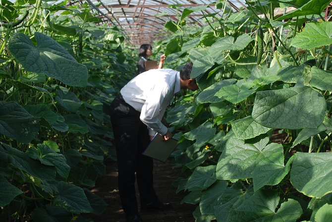 JA長生は9月30日JAグリーンウェーブ長生で、抑制キュウリ立毛共進会を開き、農林総合研究センターや長生農業事務所などが審査員として参加しました。