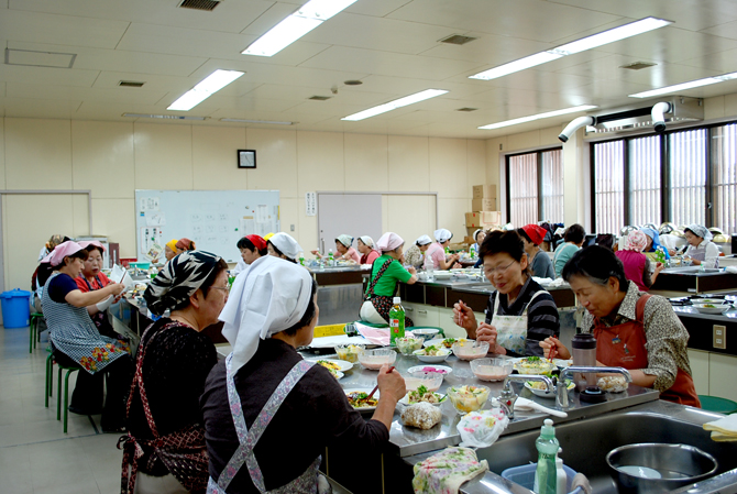 組合員の家族の方の健康を支える女性部短期大学のみなさん!たのしく調理し、おいしい食事にお話しも弾む講習となりました。