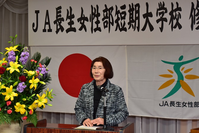 吉野清江女性部長は「大学校では自分たちの学習、健康教室、仲間づくりなど、様々な経験ができたのではないでしょうか。1年の学習の成果を十分に発揮し、地域において『誰かの役に立つことの喜び』を教育できたら素晴らしいと思います。女性部の一員として、今後も活動していただきたい」と話しました。