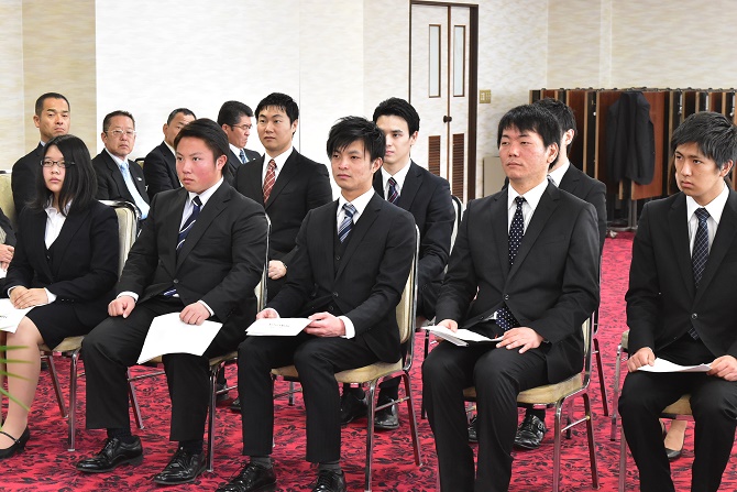 一人ひとりに辞令が交付され、4月1日から各配属先に見習いとして着任します。地域の皆さまと接する機会もあると思いますので、温かいご指導をよろしくお願いいたします。