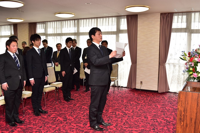 新人職員代表からは「組合員・利用者の目線に立った事業活動に取り組み、目標の達成に向けて努力することを誓います」と、力強い決意表明がありました。