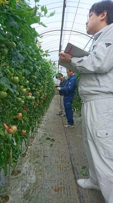 JA長生は4月11日、JAグリーンウエーブ長生で春トマトの本格出荷を前に、行政、JA全農ちば、市場担当者らが出席し春トマト立毛共進会を開催しました。千葉県農林総合研究センター木村上席研究員を審査委員長に選任し、7ほ場を審査しました。